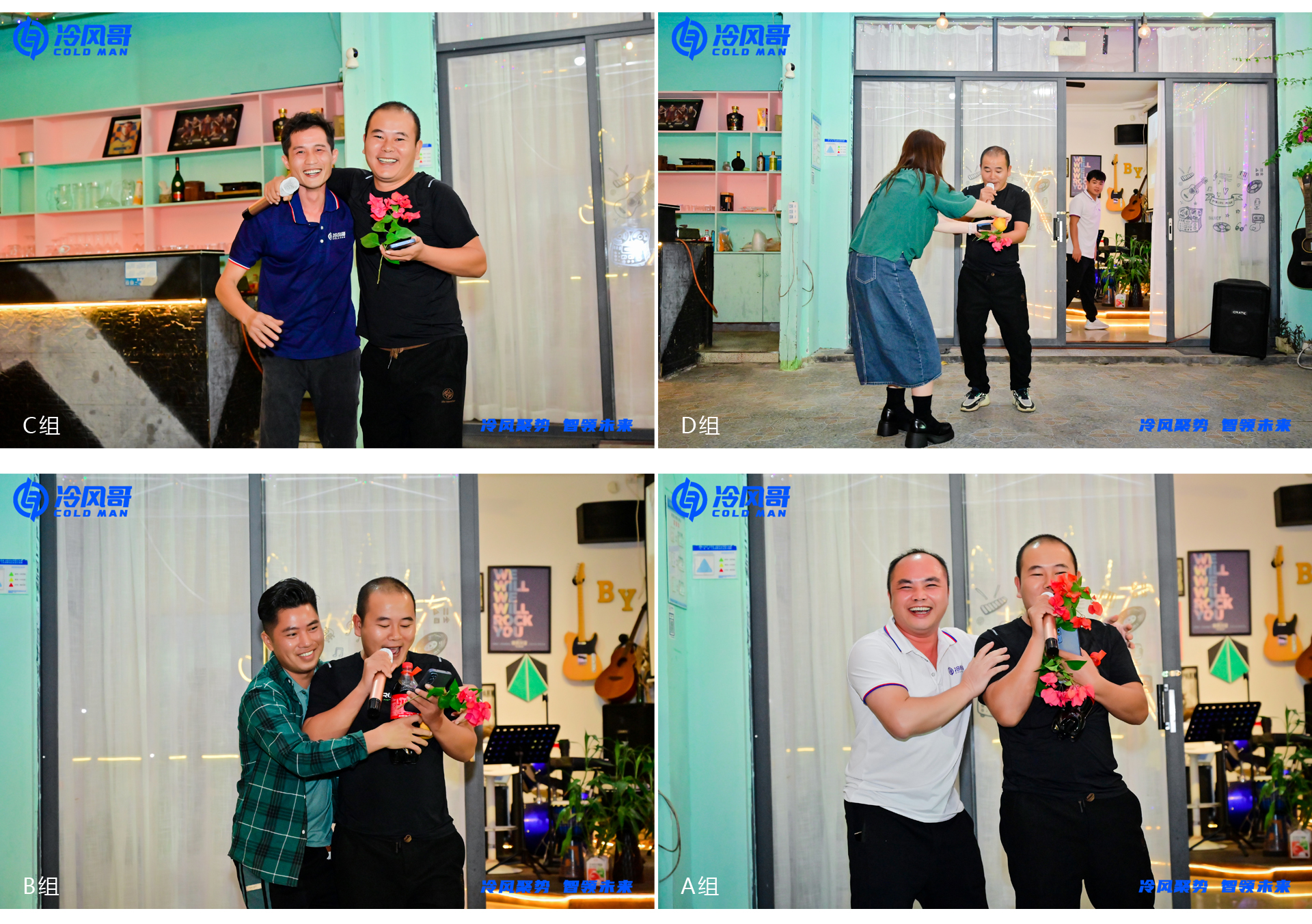 Group A rushed to the front and rushed to deliver flowers, Group B also rushed to deliver drinks, Group C also rushed to deliver flowers, and Group D also rushed to deliver oranges. Colleagues from all four groups were full of passion and wanted to add points to each group.