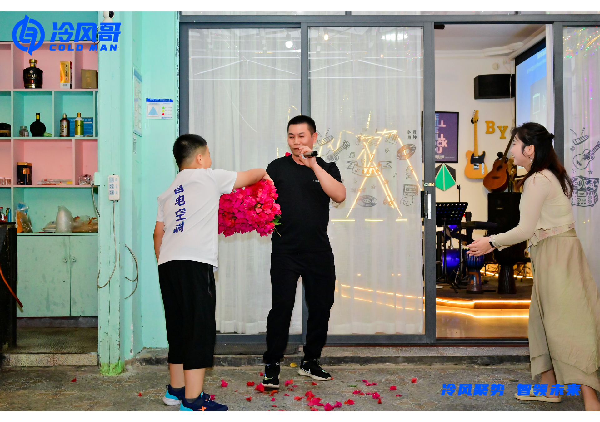 Following the order, beautiful girl Xiao Wang gave everyone a song called "Decent". Our colleague from Group A, Ah Hao, heard that we were going to earn extra points, so he rushed forward to send flowers to beautiful girl Xiao Wang, making her unimaginable and very happy.